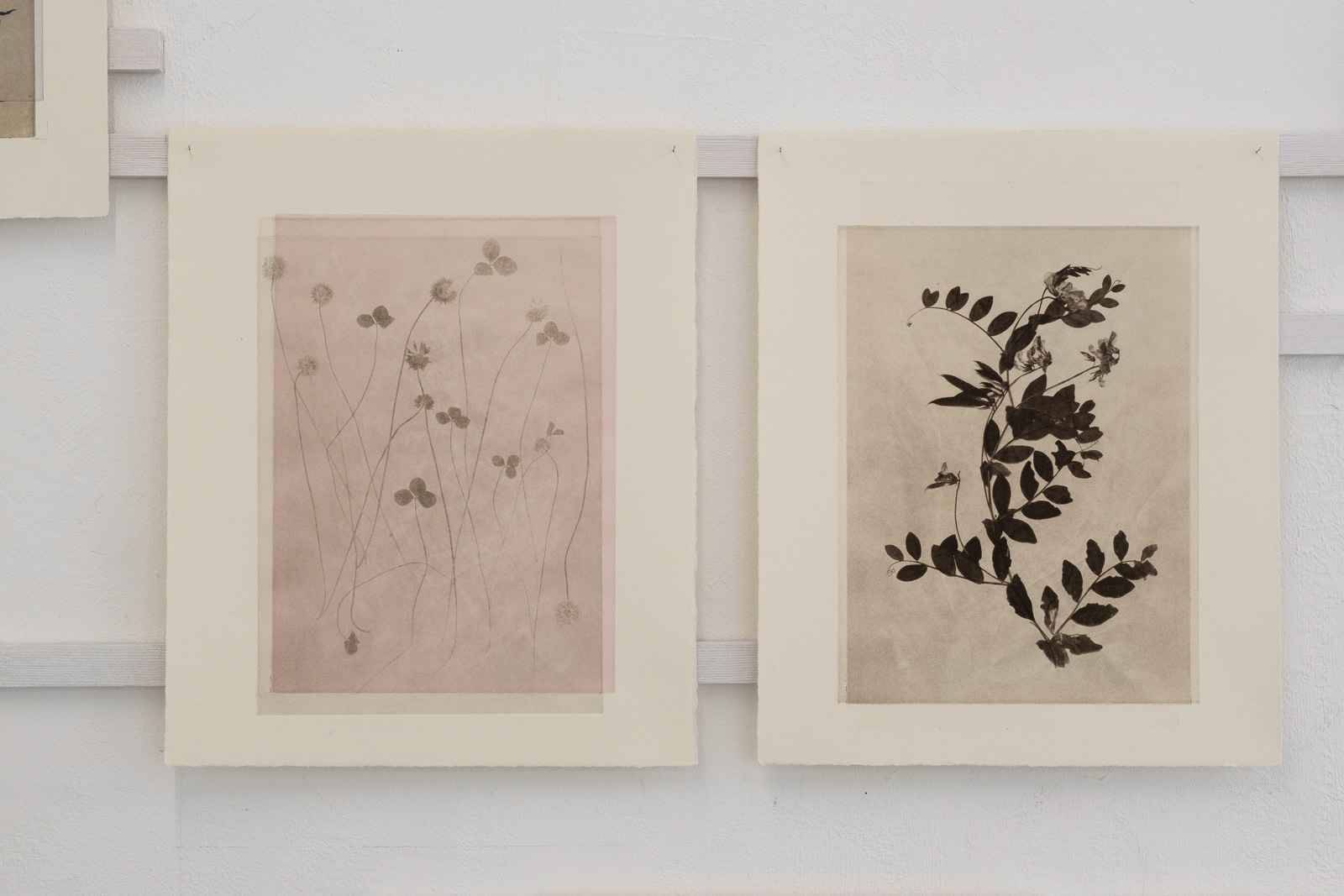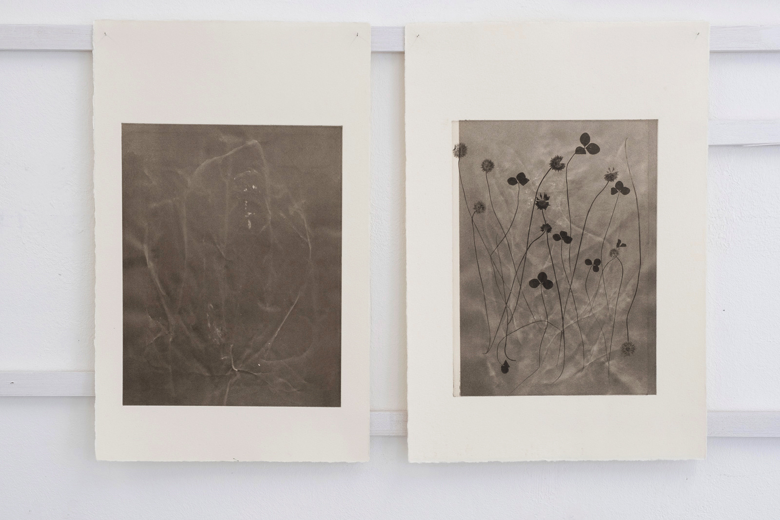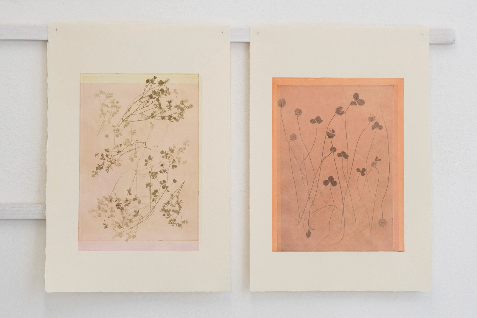 Photogravure, as a technique and form of expression, can reveal subtle details and preserve the fragility of the plants. In this series, the plants appear in full figure, as they have been pressed—only layered with colors and surfaces.